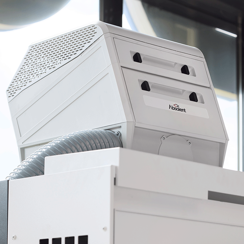 Mit einem Gewicht ab nur 24 kg und einer Stellfläche von 412 × 508 mm ist der AW so kompakt, dass er direkt an der Maschine montiert, verschoben und selbst in engsten Bereichen eingesetzt werden kann.